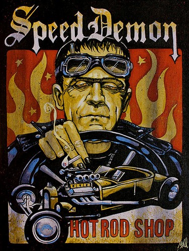 Speed Demon By Mike Bell Canvas Giclee Tattoo Art Print Frankenstein Hot Rod Ebay
